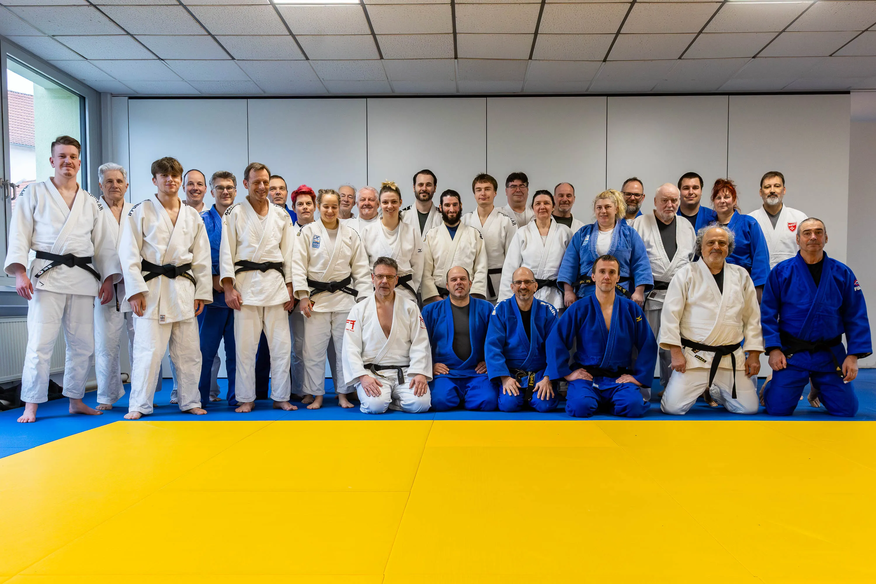 Nach der Mittagspause wechselte der Lehrgang auf die Matte. In einer umfangreichen Praxiseinheit wurden Standardsituationen, prüfungsrelevante Techniken und mögliche Lösungsansätze vermittelt.